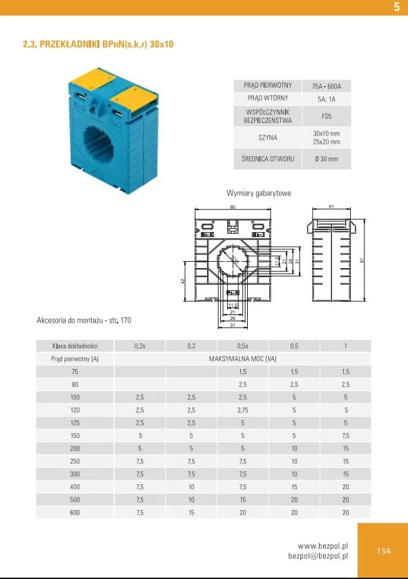 Przekładnik S30L 75/5A 2,5VA kl. 0,5