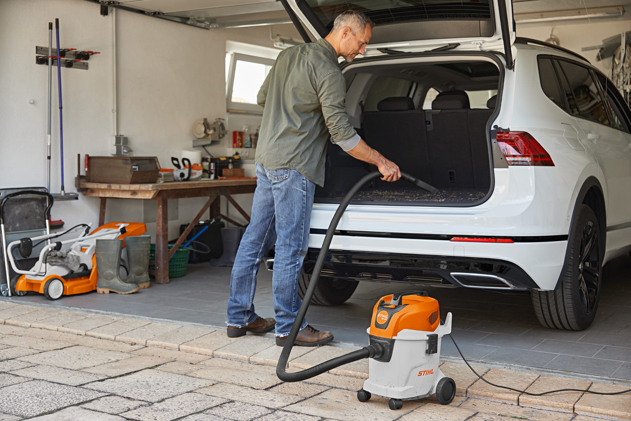 Do oczyszczania suchych i mokrych powierzchni na terenach przydomowych oraz odkurzania samochodów. Wszechstronny dzięki bogatej ofercie akcesoriów. Końcówka do czyszczenia podłóg umożliwiająca przełączanie między trybem czyszczenia na sucho i na mokro, funkcja dmuchawy aktywna po przełożeniu węża ssącego do otworu wydmuchowego, 2-częściowa rura ssąca poprawiająca ergonomię pracy. Optymalne przechowywanie akcesoriów bezpośrednio na urządzeniu, dysza do szczelin, końcówka do czyszczenia podłóg, wąż ssący o długości 2 m.