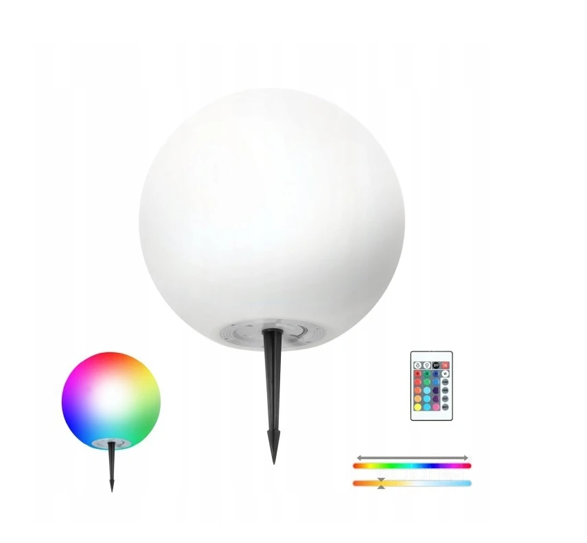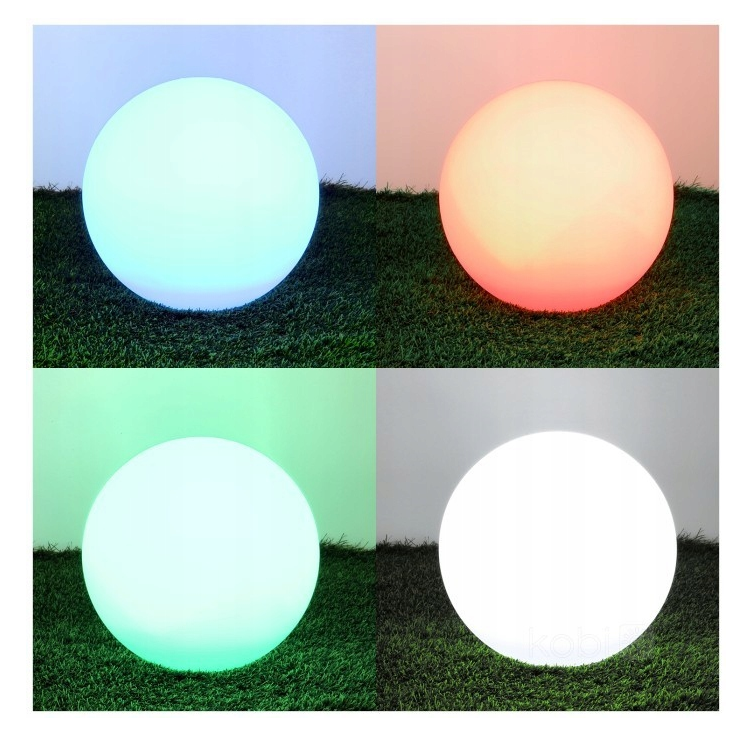 Efektowna kula ogrodowa RGB – możliwość ustawienia kolorów statycznych lub dynamicznych.