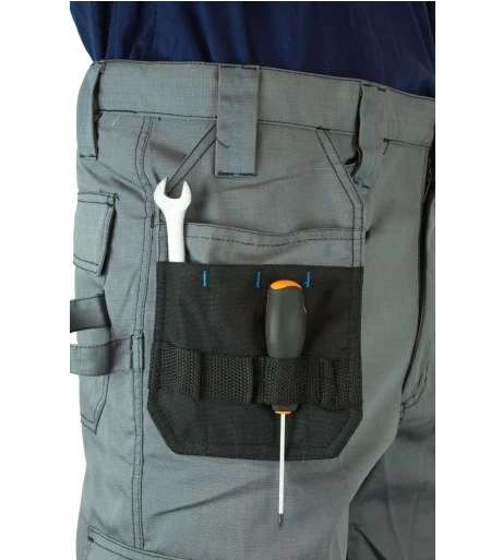 Krótkie spodenki robocze Hogert sprawdzą się szczególnie podczas letnich dni przy wykonywaniu różnych prac. Wyposażone są w 6 praktycznych kieszeni, w tym 1 kaburową na narzędzia i 1 przeznaczoną do przechowywania telefonu komórkowego.